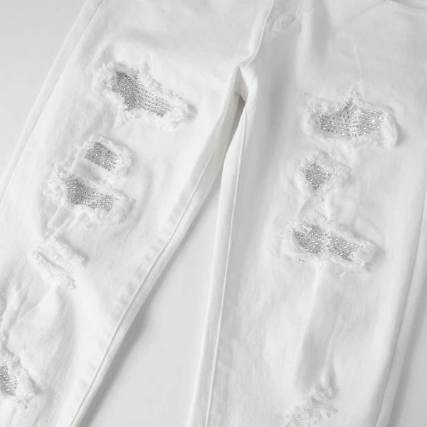 Don't settle for ordinary jeans, upgrade your style game with our White Diamond Jeans. Order now and experience the perfect blend of fashion and comfort.